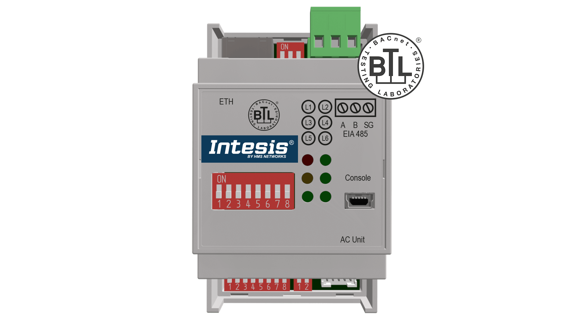 Daikin AC Domestic units to BACnet (IP or MS/TP) Intesis Gateway. Intesis AC gateway Daikin to BACnet (IP or MS/TP) control systems. Connects to the Daikin indoor unit S21 connector. Configuration from onboard DIP switches. Occupancy function to allow energy savings. AC running hours counter (for maintenance purposes), and error indication. Simultaneous AC unit control via AC’s remote control and BACnet. No external power required.
