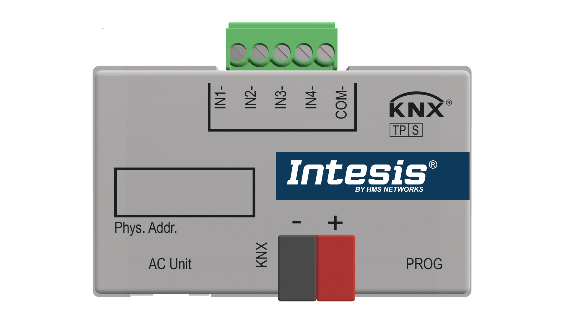 Daikin AC Domestic units to KNX Intesis Gateway with binary inputs. Intesis AC gateway Daikin to KNX TP. Enables monitor and control of Daikin indoor units from KNX. It connects directly to the indoor unit S21 connector. Configuration tool: ETS. AC unit controlled by both the AC’s remote control and KNX. 5 scenes. 4 binary inputs to integrate and configure third-party devices. Timeout for Open Window and Occupancy. Sleep function also available. External power supply not required. Supports Power and Economy mode.