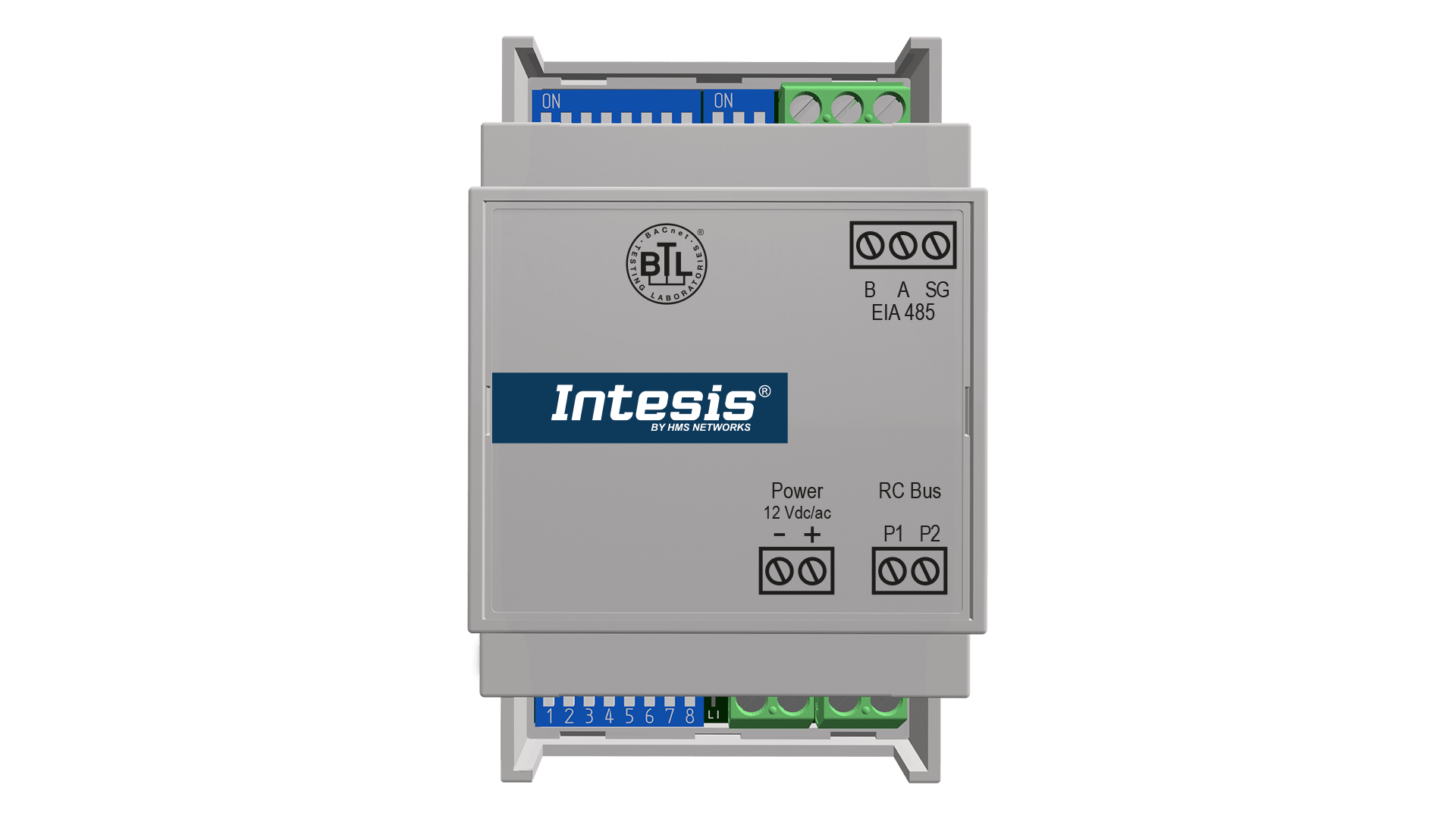 Intesis gateway for Daikin Altherma 3 Air-to-Water heat pumps to Modbus RTU or BACnet MS/TP. Intesis gateway Daikin Altherma 3 Air to Water to Modbus RTU or BACnet MS/TP. Configuration from onboard DIP switches. Bidirectional communication. Connects to Daikin P1/P2 bus. Reports the Antilegionella cycle status (on/off). External power supply not required. Provides error codes and detailed description. Reports Altherma 3 error codes. Includes Altherma running hours counter.