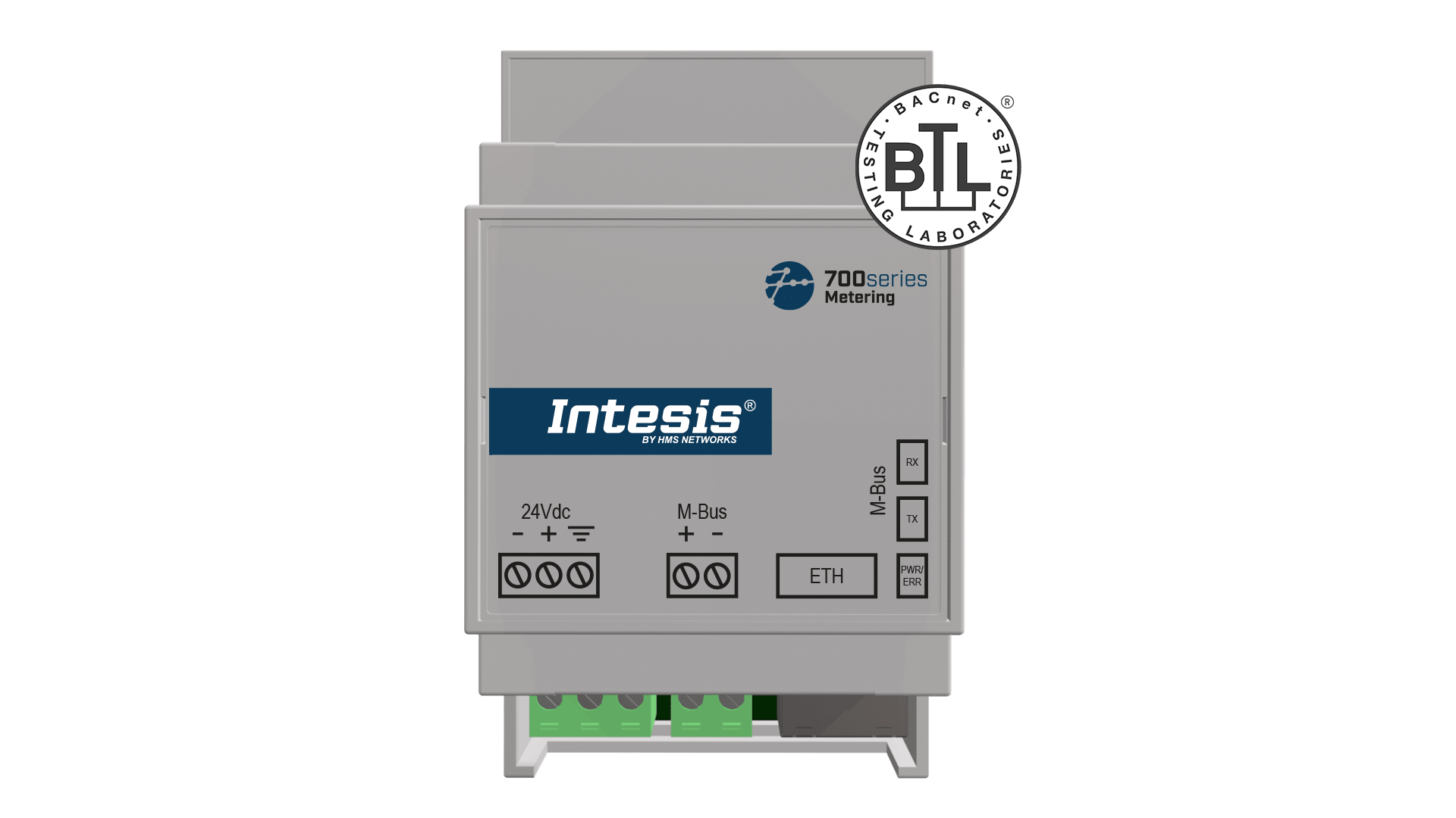Intesis Protocol converter M-Bus to BACnet/IP or Modbus TCP. Capacity: up to 20 M-Bus meters. Intesis protocol converter IN712MEB (700 Series). Capacity: 20 devices. Configurable to integrate M-Bus meters into Modbus TCP or Integrate M-Bus meters into BACnet/IP. Configuration and Diagnostic tool: Intesis MAPS. Configurable inter-polling intervals (up to 48 hours). Export and import projects as xlsx files. M-Bus built-in level converter.