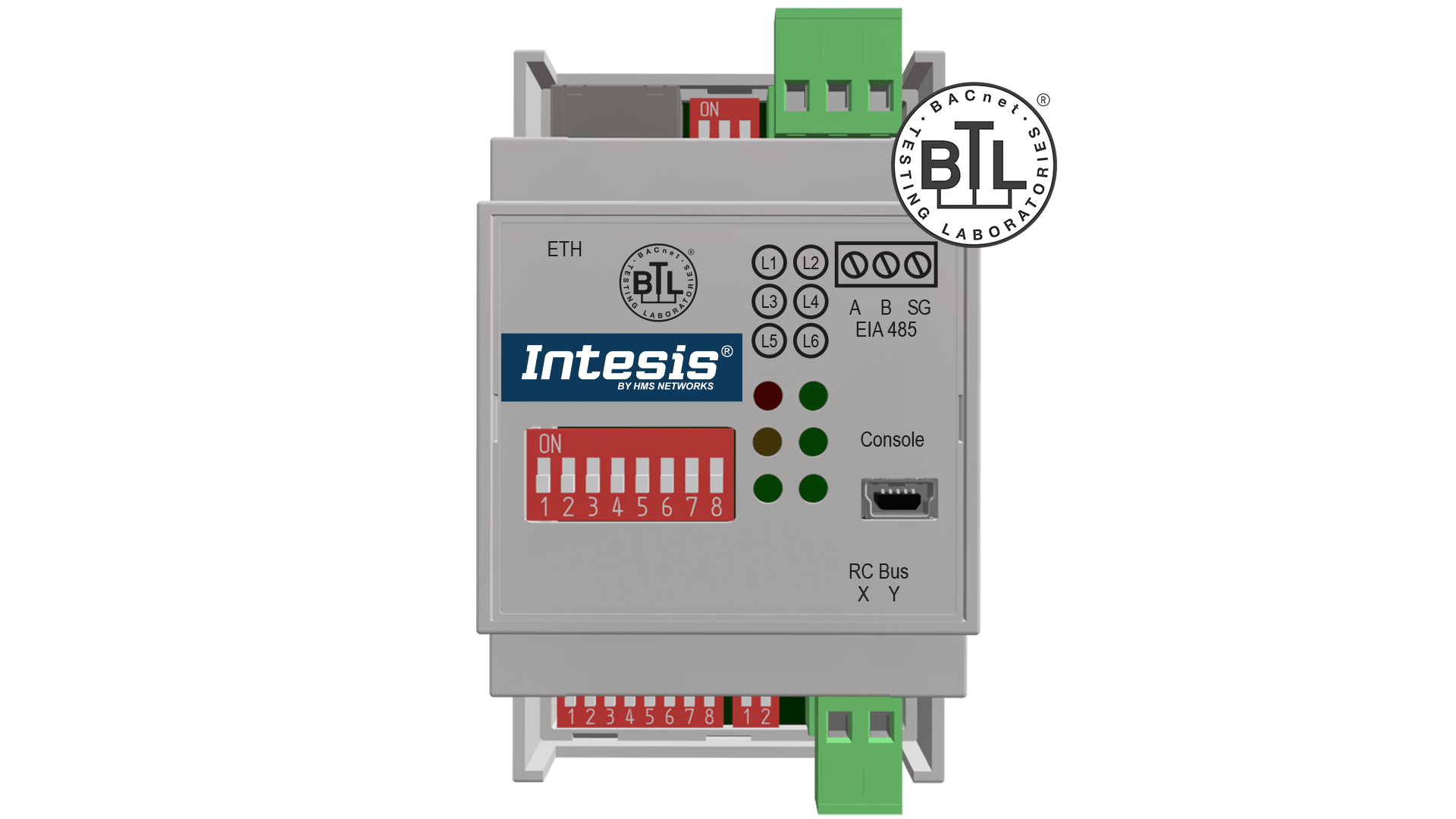 Mitsubishi Heavy Industries FD and VRF systems to BACnet MS/TP or BACnet/IP Intesis Gateway. Intesis AC gateway for Mitsubishi Heavy Industries to BACnet (MS/TP or IP). Enables monitor and control of Mitsubishi Heavy Industries indoor units from BACnet MS/TP. Connects to the indoor unit XY bus. Configuration from onboard DIP switches. Supports occupancy function to allow energy savings. AC running hours counter (for maintenance purposes), and error indication. AC unit control by AC’s remote control and BACnet. External power supply is not required.