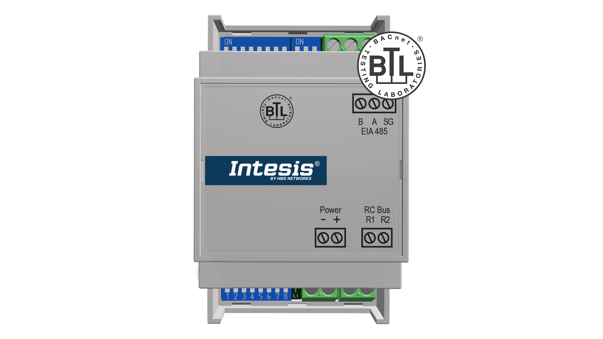 Panasonic ECOi and PACi systems to BACnet MS/TP Intesis Gateway. Intesis AC gateway Panasonic to BACnet MS/TP. Enables monitor and control of Panasonic indoor units form BACnet MS/TP. Connects to the indoor unit R1/R2 bus. Configuration from onboard DIP switches. Supports Occupancy function to allow energy savings. AC running hours counter (for maintenance purposes) and error indication. AC unit control by AC’s remote control and BACnet .External power supply is not required.